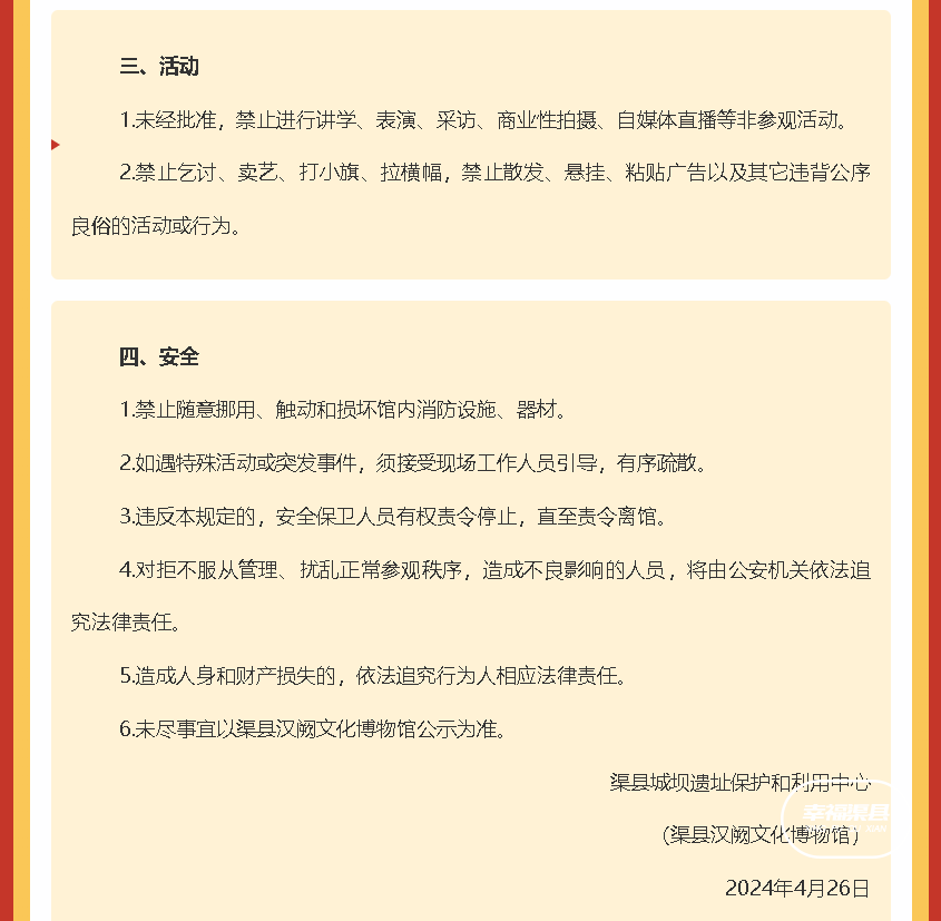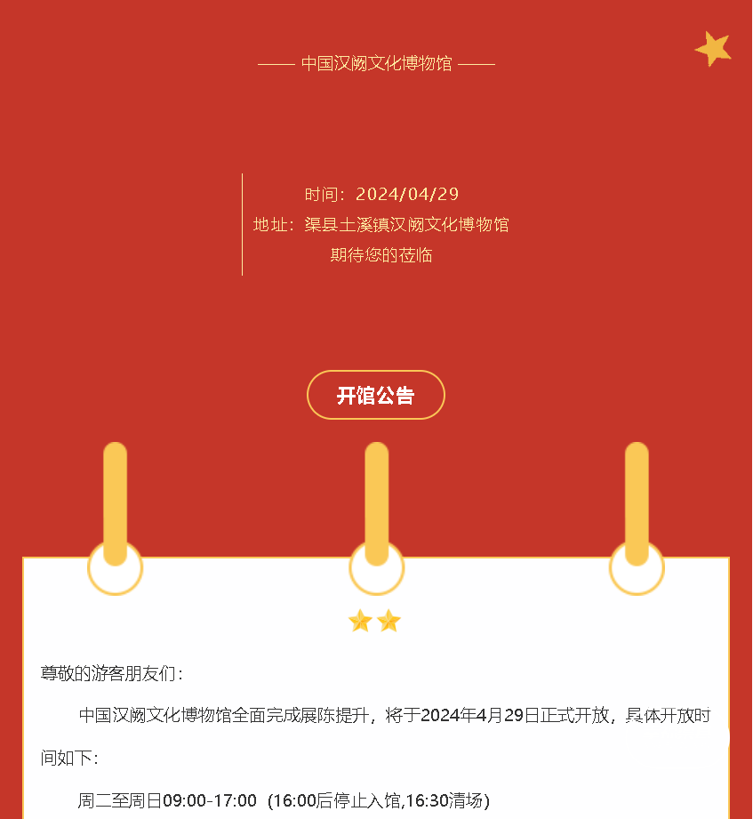 渠县·中国汉阙文化博物馆关于2025年春节假期开放时间的公告..