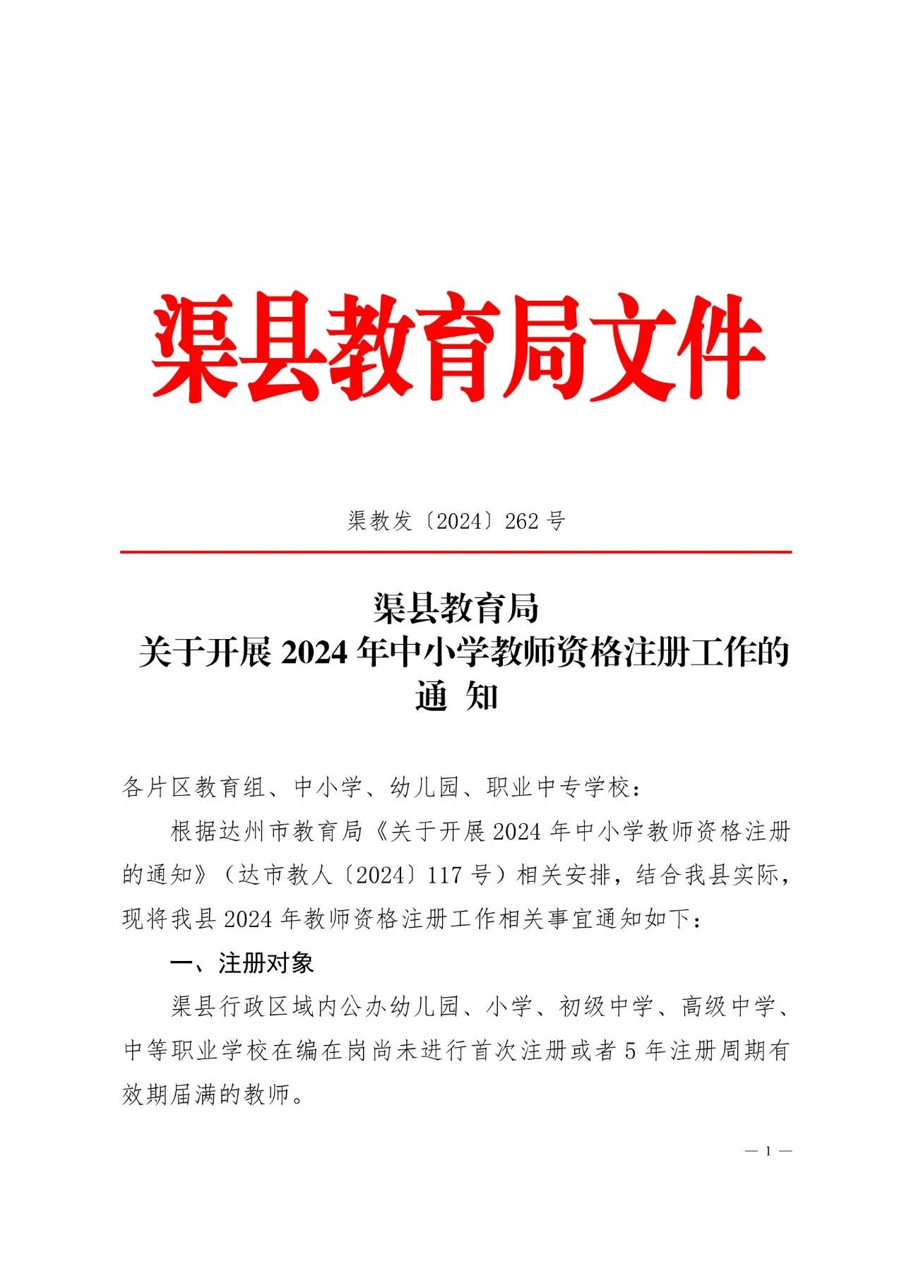 关于开展渠县2024年中小学教师资格注册工作的通知
