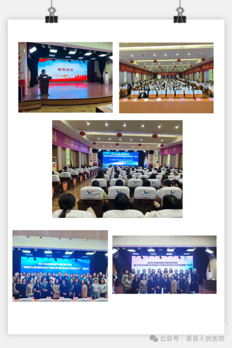 近日,渠县人民医院成功举办省、市级继续医学教育项目“精细化管理助推护理高质量发展实践探讨”和“基于多学科联合的围手术期风险管控与快速康复”培训班。渠县人民医院护理分管领导杨娟副院长出席培训班,县域内的300余名护理领域的精英骨干参加培训。培训班由护理部主任王蕾主持。