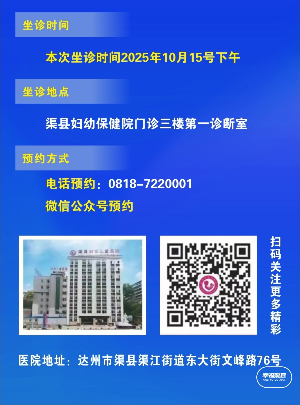 成都市锦江区妇幼保健院王小飞主任医师坐诊渠县妇幼保...