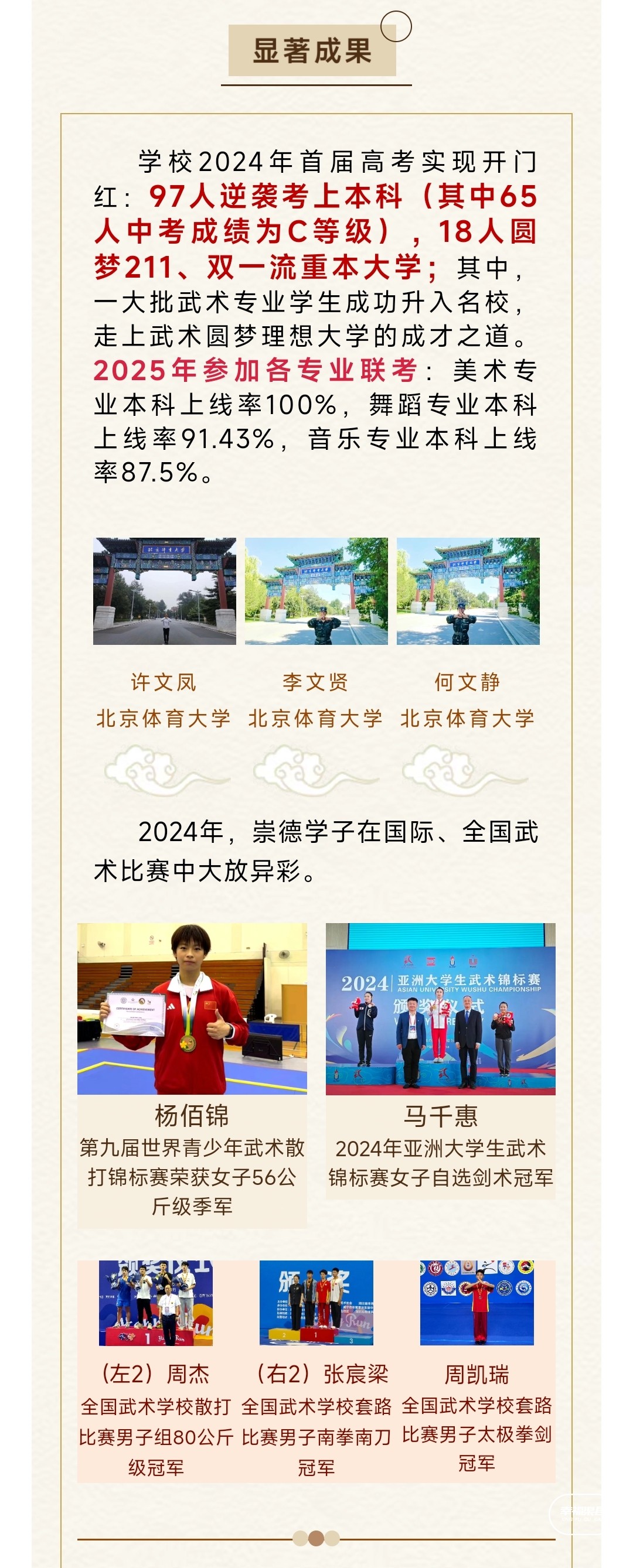 崇德升学喜报②丨5名武术特长生提前圆梦名校