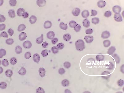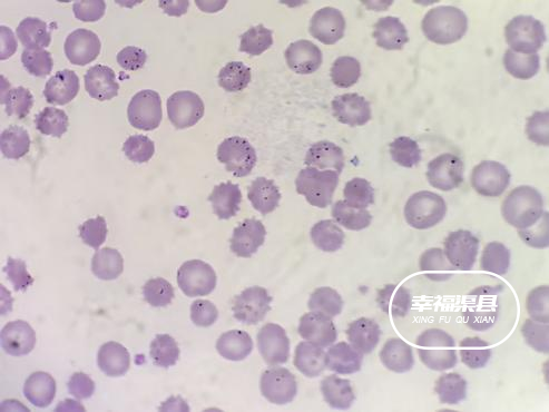 嗜碱性点彩红细胞是一种尚未成熟的红细胞,在发育过程中受到损害,如某些重金属(铅、铋、汞),其中胞质中残存的嗜碱性物质(RNA)变性沉淀而形成。经特殊染色(瑞氏染色)后,可见红细胞粉红色胞质中呈现出粗细不等的蓝黑色颗粒,如同“灿烂星空”。这是重金属中毒的一个典型特征。区别正常情况下,红细胞在显微镜下是均匀的淡红色。